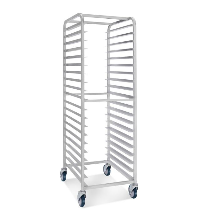 Rack para uso en el ramo de los alimentos. Este rack te permitirá poder transportar a cualquier lugar, grandes cantidades de alimentos, como panes. Gracias a su diseño para optimizar su movilidad, podrás facilitar y optimizar los tiempos de trabajo en tus procesos de elaboración